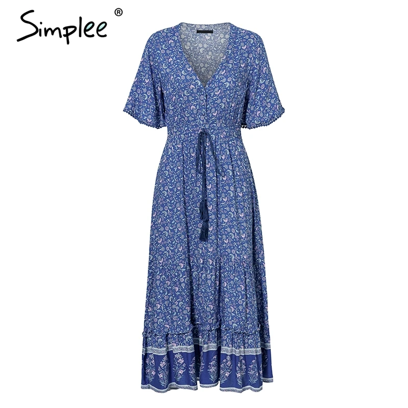 This product Simplee Bohemian print summer dress women Short sleeve ruffled long maxi dress Elegant v-neck draws is provided for you. Don't hesitate to buy this product.if you are interested in this product and want to buy, just click the buy button to get a discount